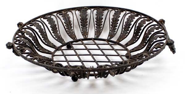 Cast Metal Fruit Basket, measures 13''L x 3''H, double handles