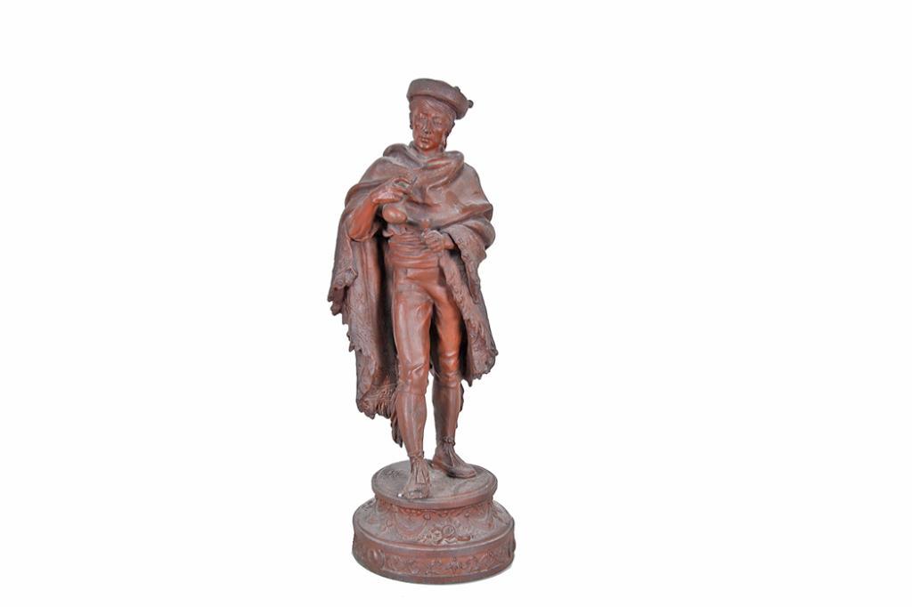 Cast Metal Statue of European Gentleman Measures 23"x10", unsigned, shows age.Measures 23"x10", unsigned, shows age.