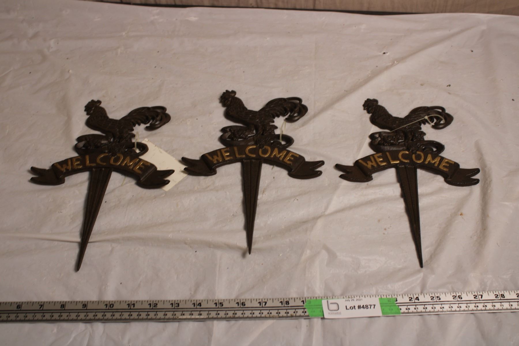 Cast Metal "Welcome" Outdoor Ground Spikes (13" tall form end to end)