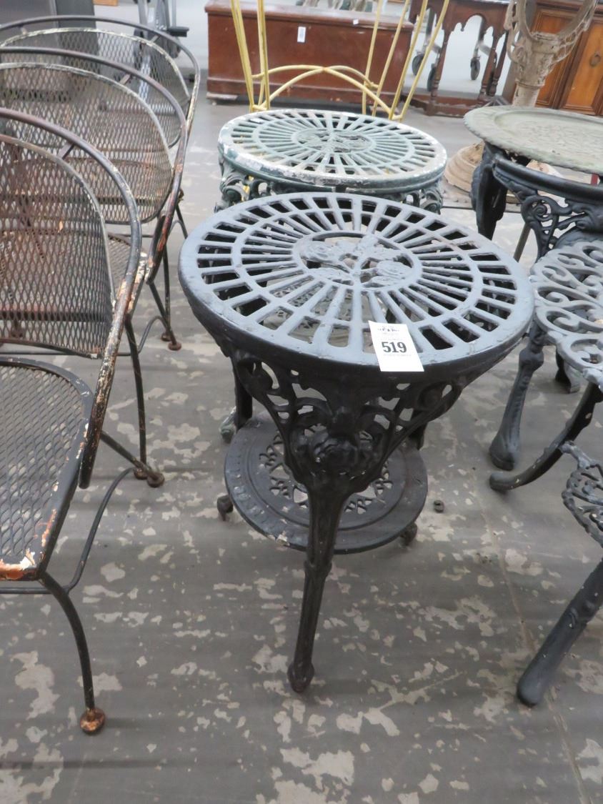 Cast Round Floral Motif Patio End Tables - Pair