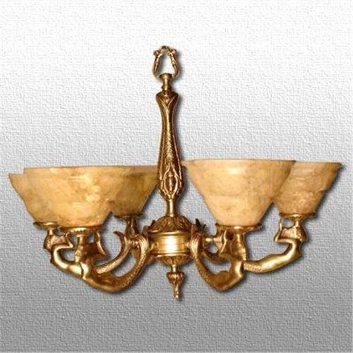 <tr><td>Title:Cast bronze chandelier with five alabaster</td></tr>