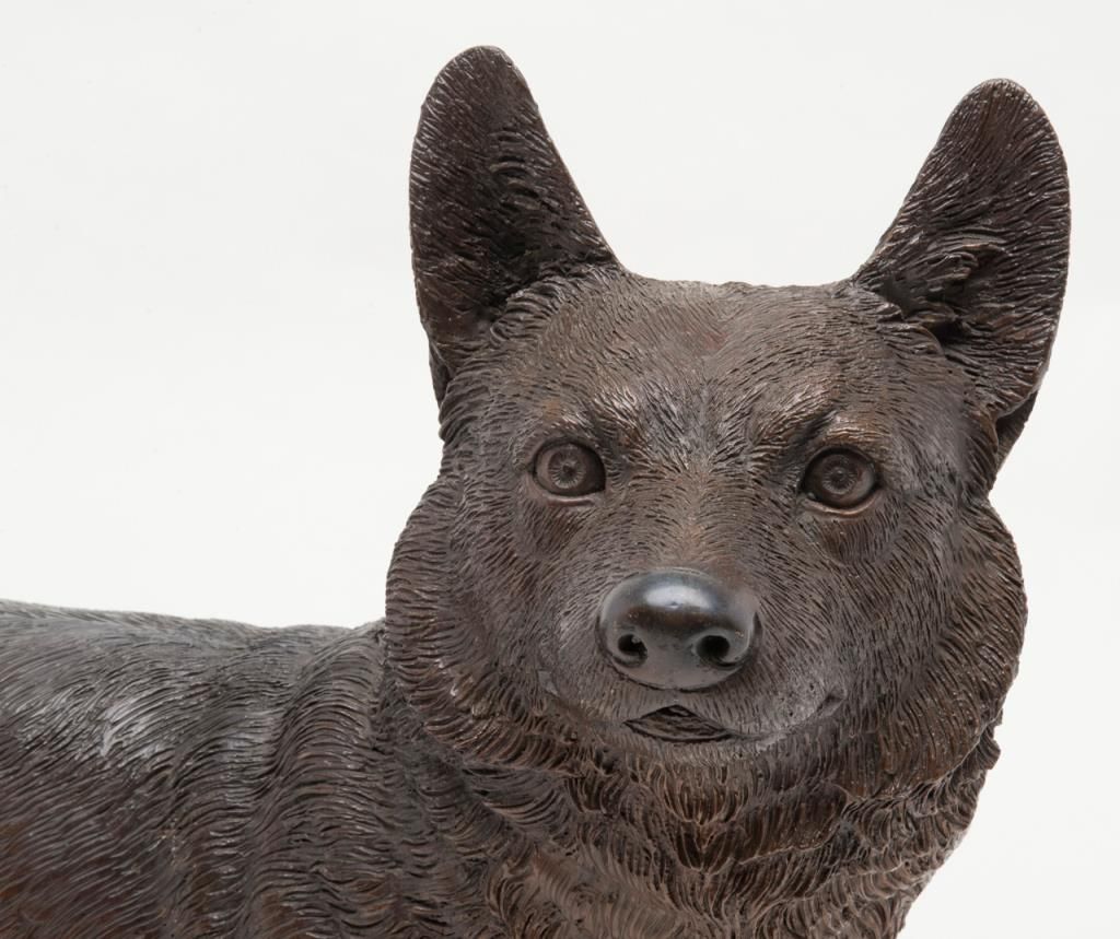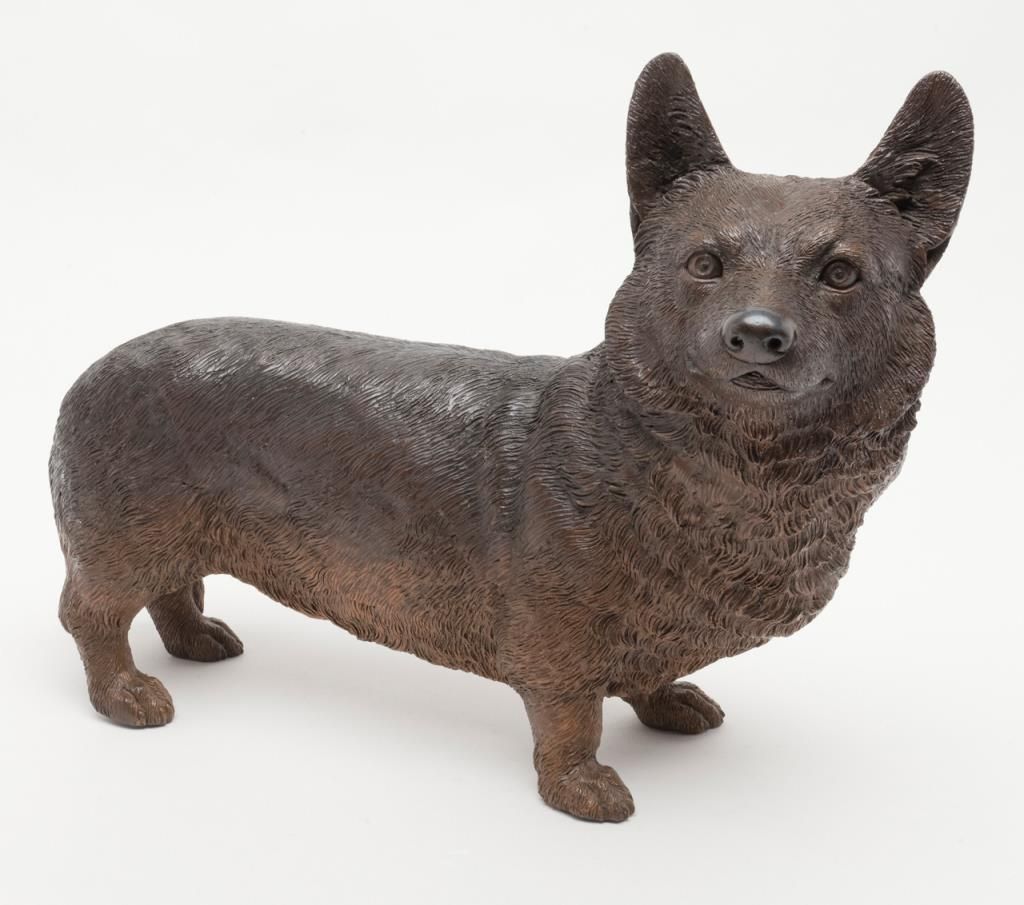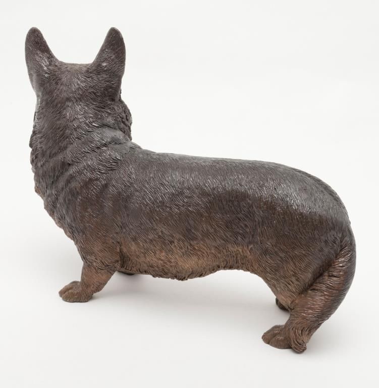 Cast bronze figure of a Corgy Breed dog, approx. 15” x 21”. Est.: $250-$500.