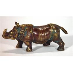 Cast bronze standing rhinoceros, 13cm in length