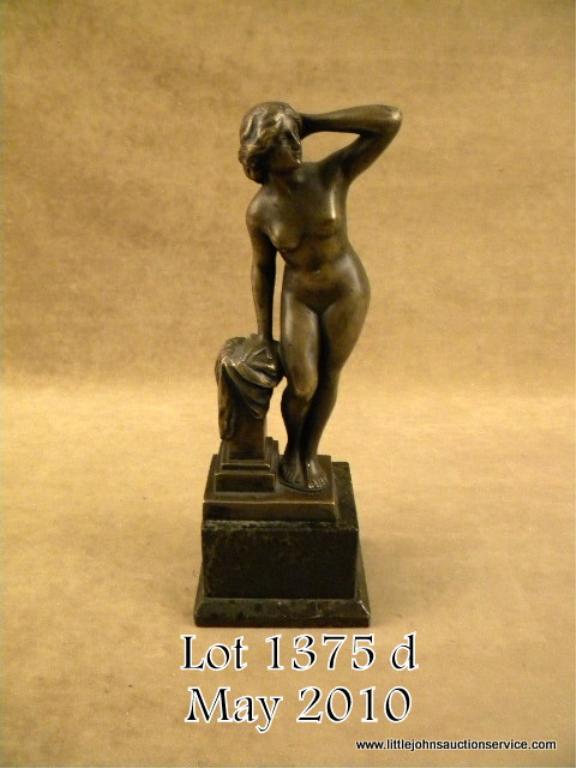 Cast bronze statue of a nude signed “Muller”, approx. 8” in height on an approx. 3” marble base in overall excellent condition with a deep patina; well-proportioned and showing what appears to be a style of the early 1900’s. Est.: $150-$300.