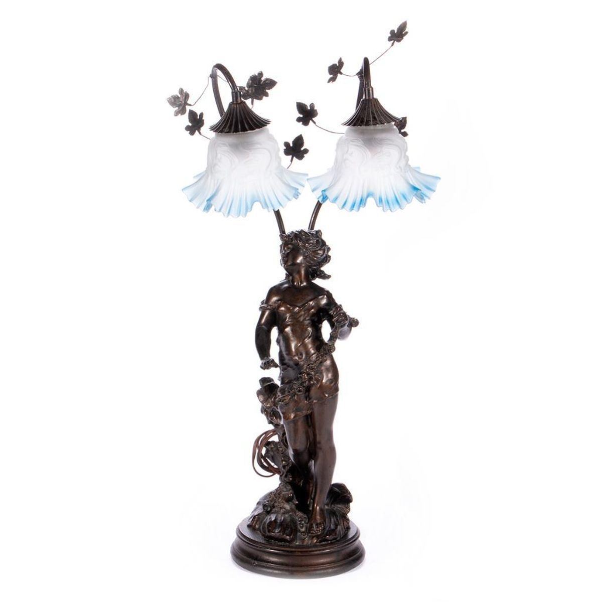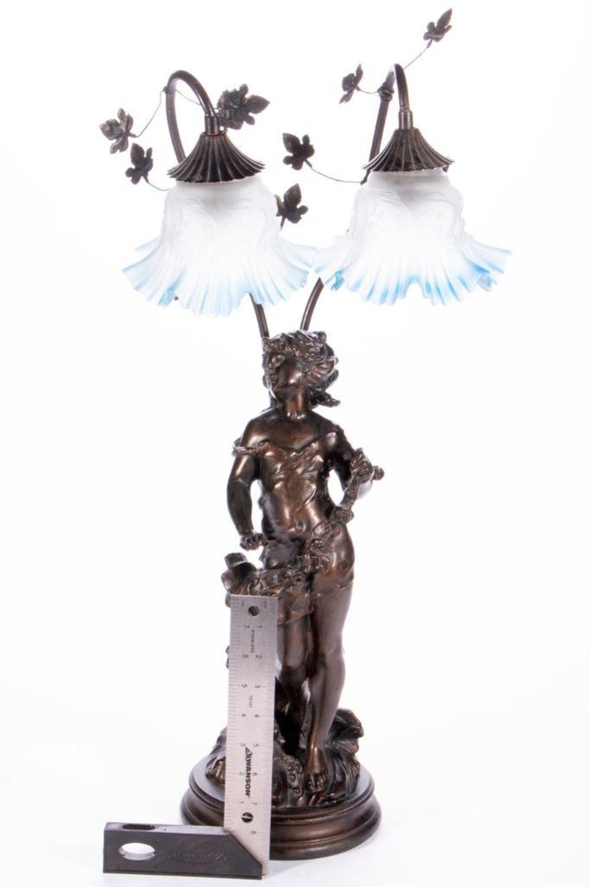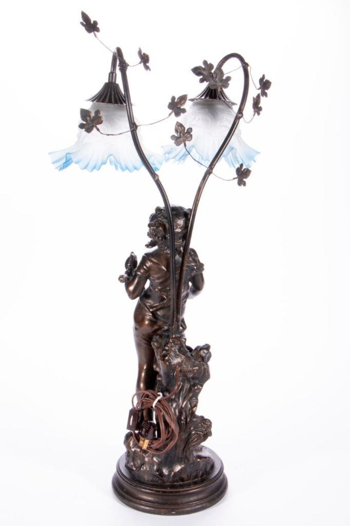 A cast bronze table lamp of a young girl measuring 26 inches high x 7 1/2.