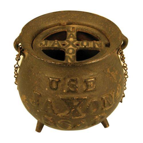 Cast iron Jaxon Soap string holder with original lid. Excellent original condition. 5 inches high X 4 inch diameter.
