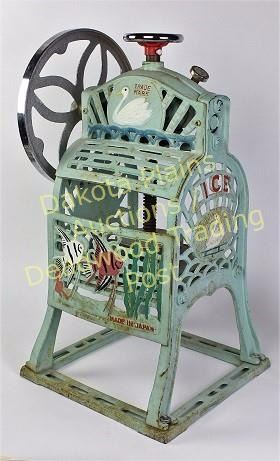 Cast iron counter top ice shaver in good working order.  Est. 100-250in good working order.  Est. 100-250