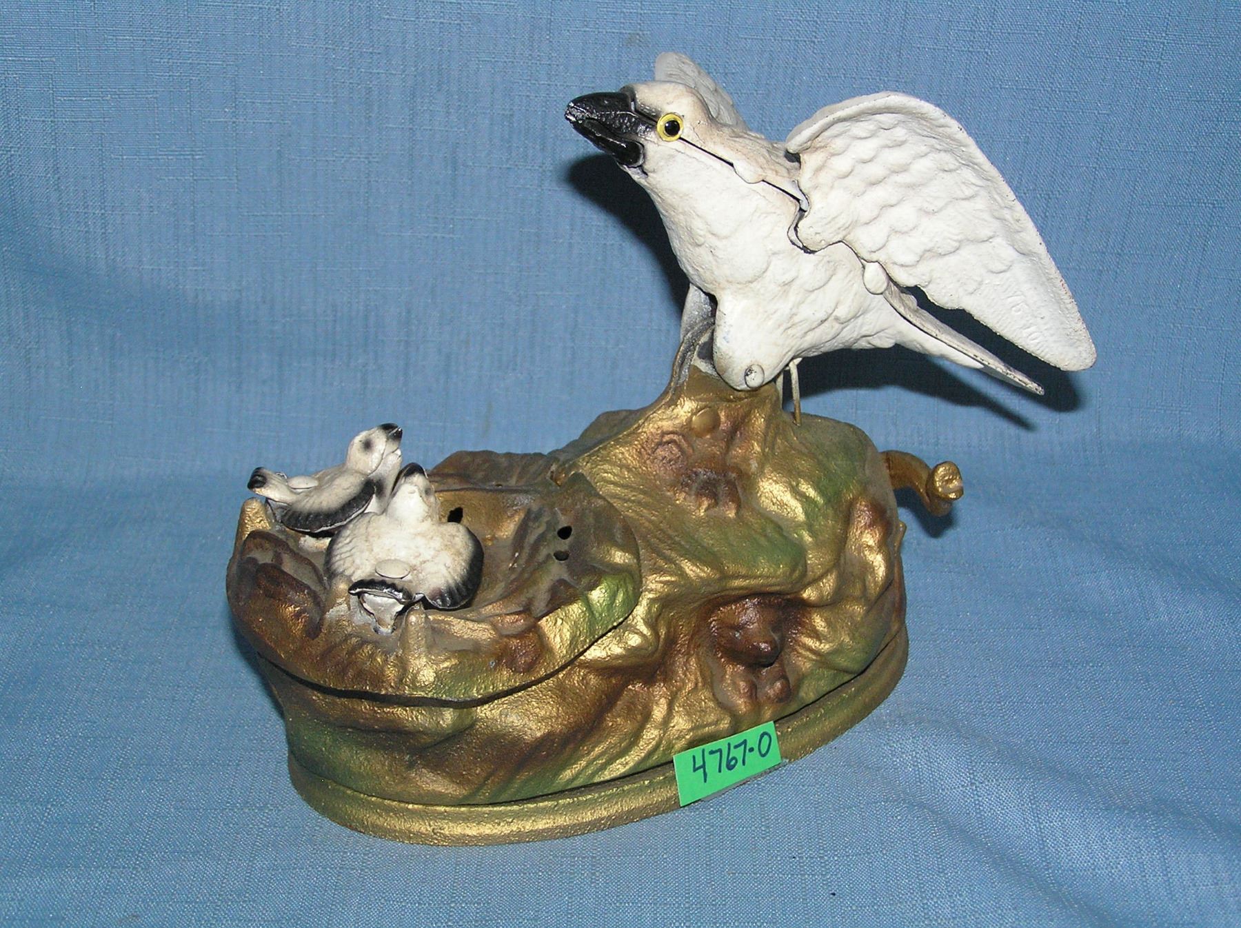Cast iron eagle and eaglets mechanical bank from the Book of Knowledge series 1956 est. value $500.00-$550.00