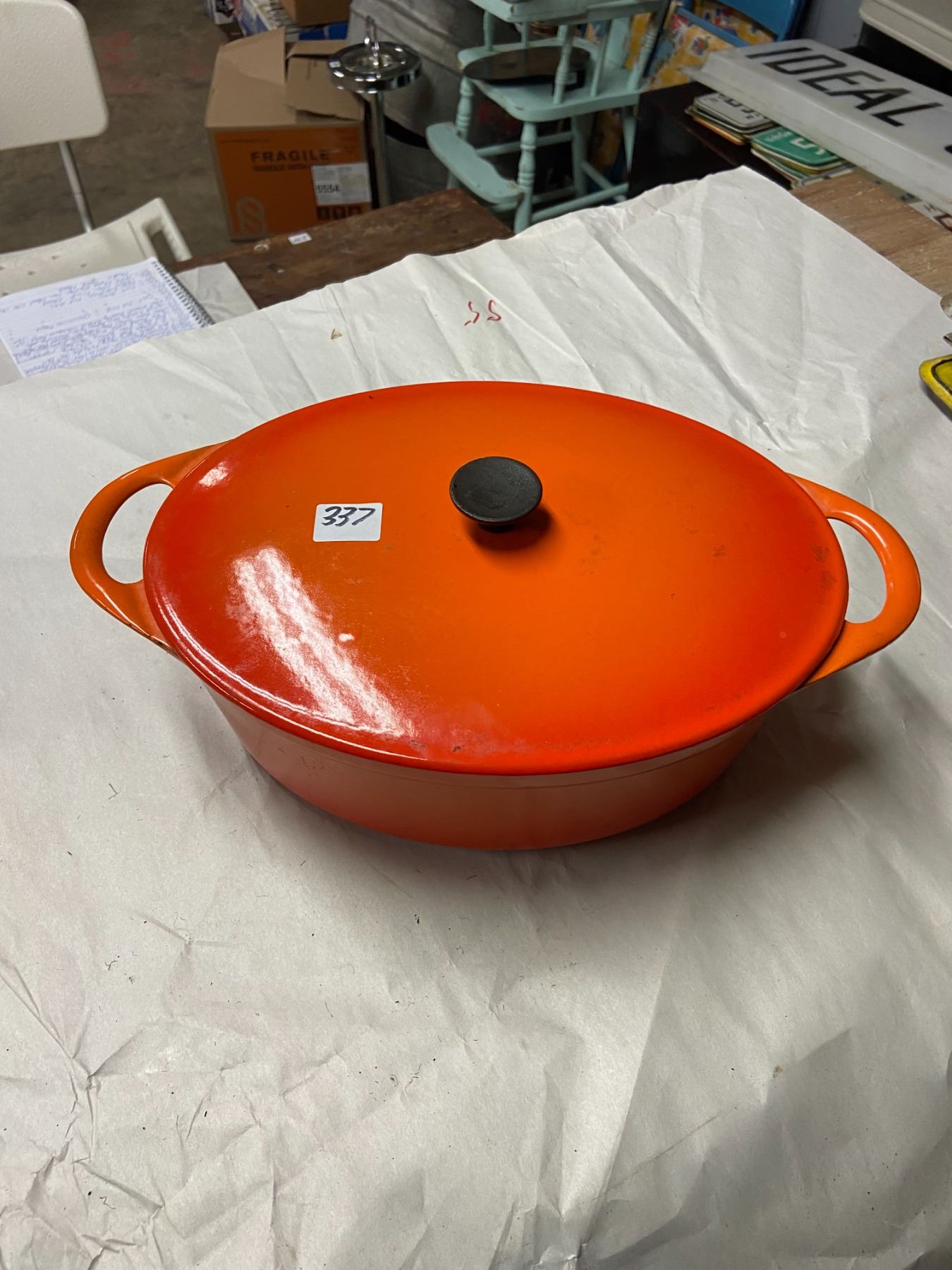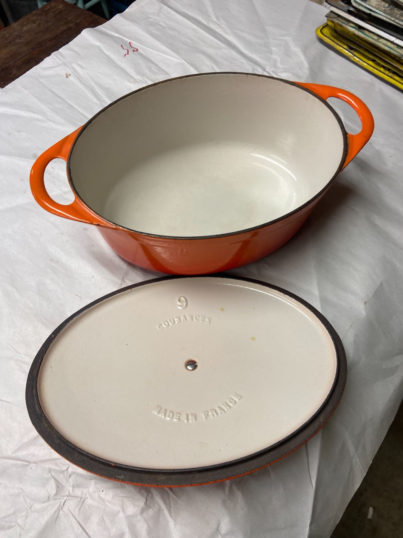 Cast iron enamel roasting pot, with lid - Cousances, France - 10"