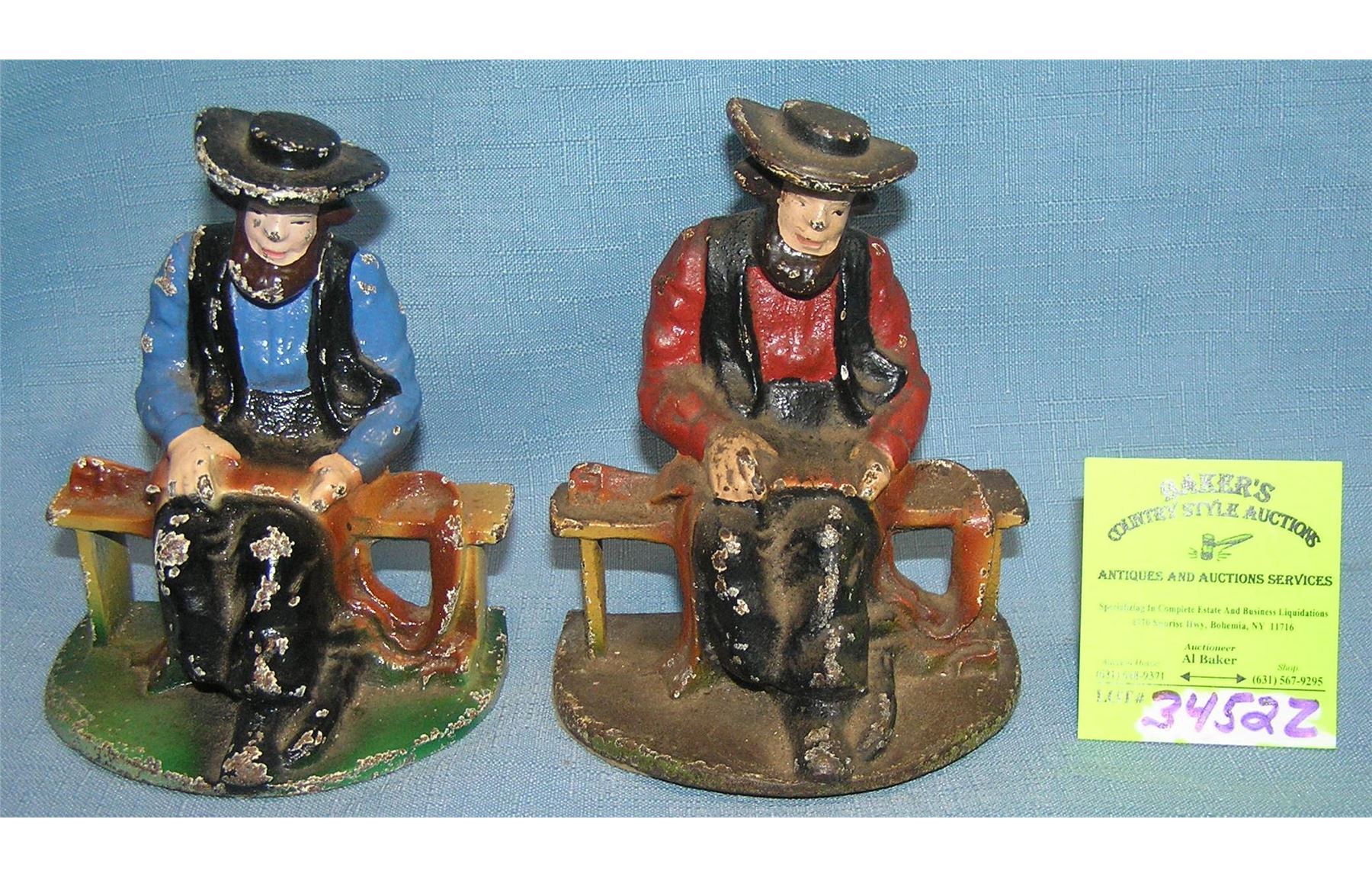Hand painted cast iron figural book ends/paper weights est. value $125.00-$150.00