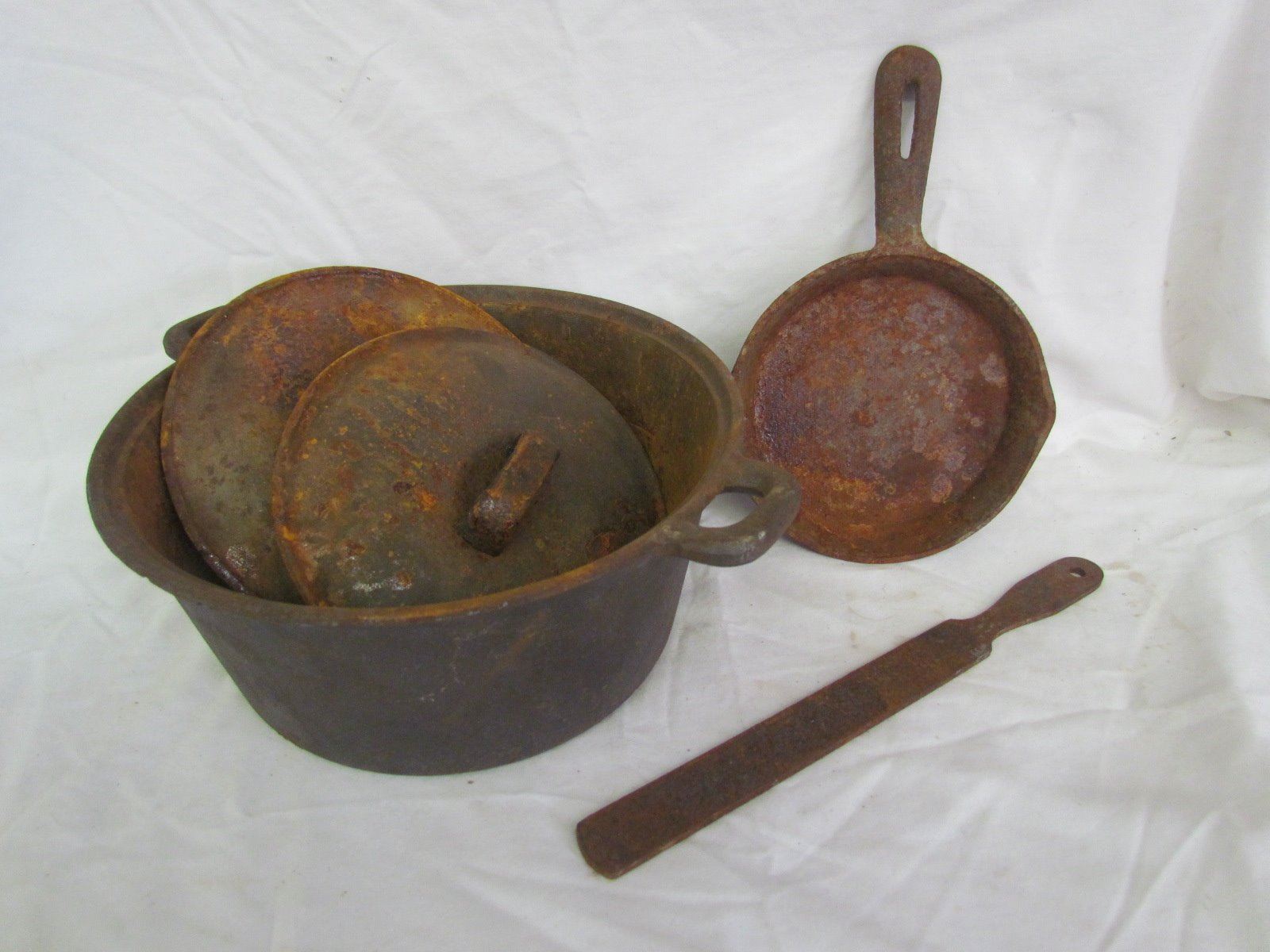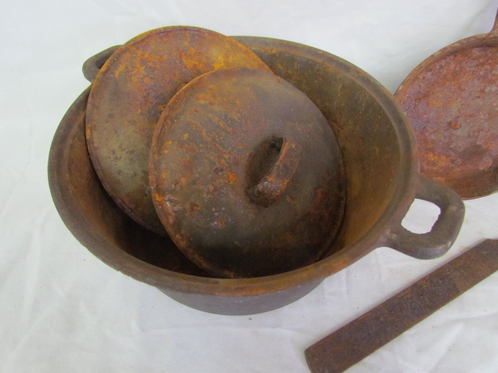Cast iron items - Pot, 2 lids, Pan