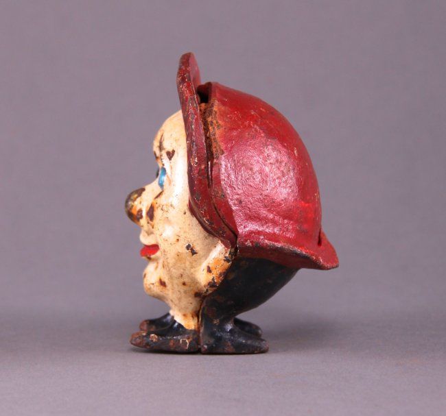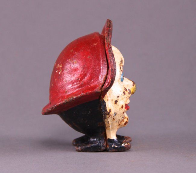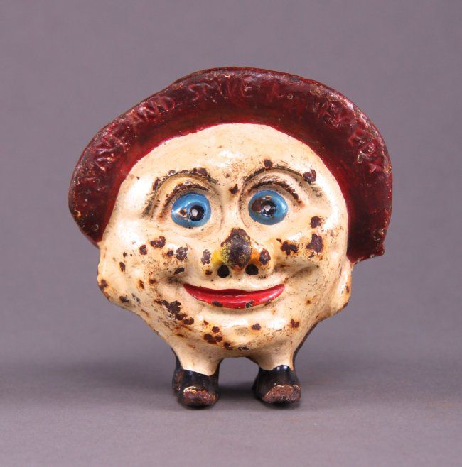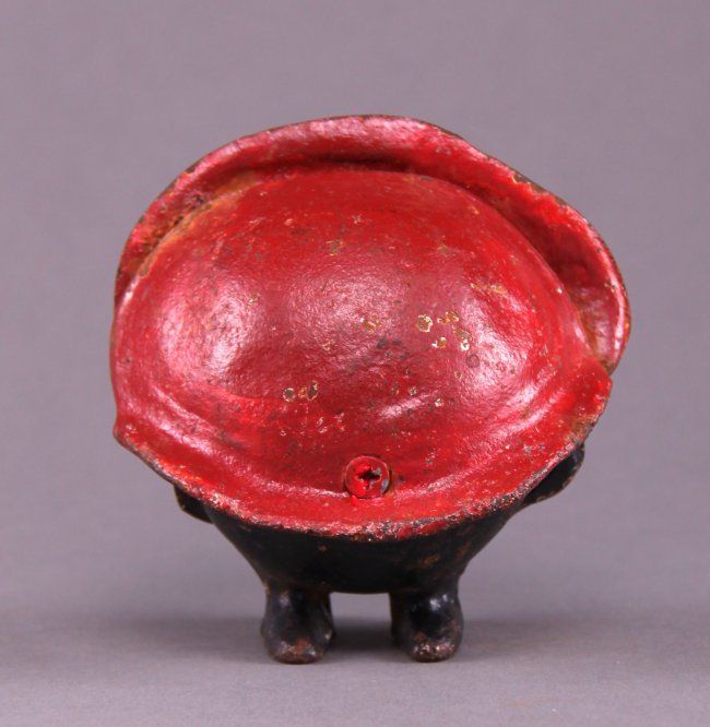 Cast iron money box bank. (Size: See last photo for measurement.) Photos are part of the description representing the condition report. Pangaea Auctions urges Bidder's to view all attached photos.