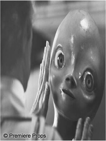 Close Encounters of the Third Kind (1976) alien head casting, fully painted and detailed, made by Burman Studios. Featuring stunning blue eyes and a small mouth. Burman created the extraterrestrial visitors for Steven Spielberg's iconic sci-fi adventure. Oversize item. Additional postage required. (14x9x10)
