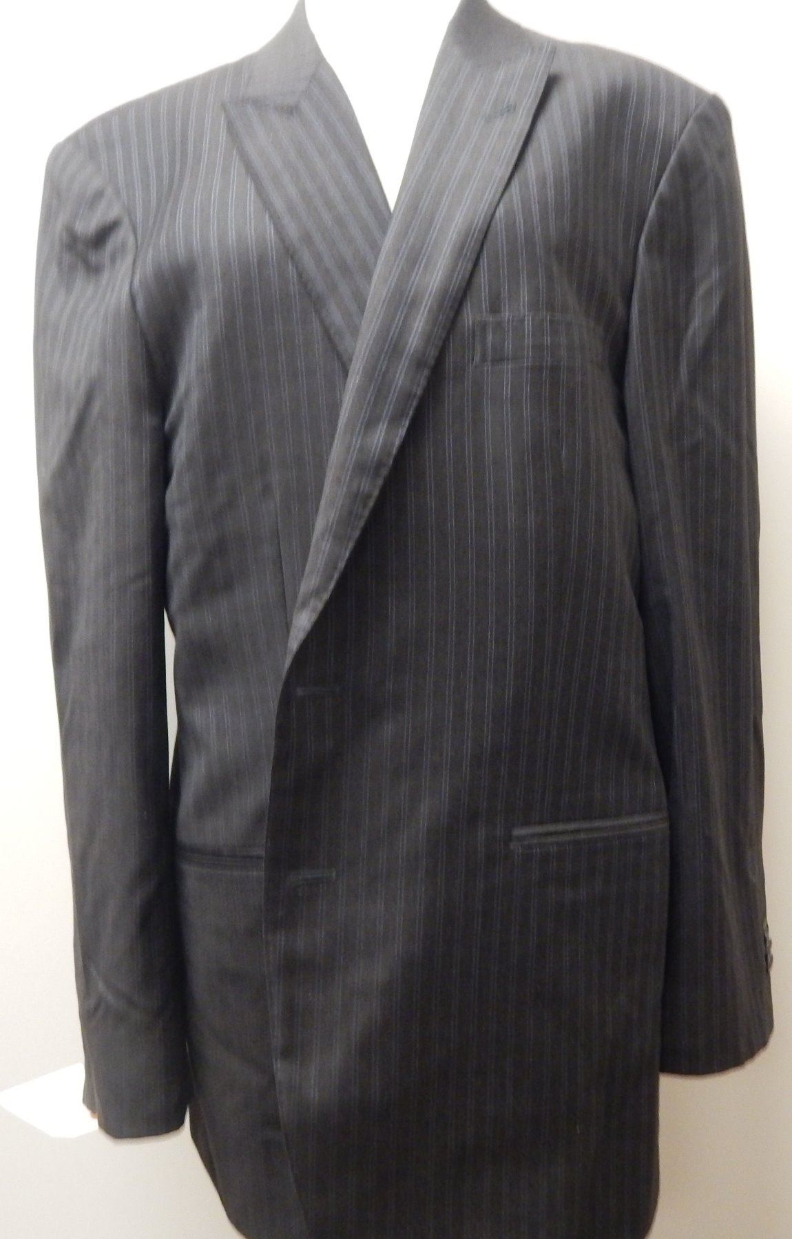 Custom made DeStefano black and blue striped blazer screen worn by Nathan Fillion in the series Castle. All items come with a certificate of authenticity good for the life of the piece.