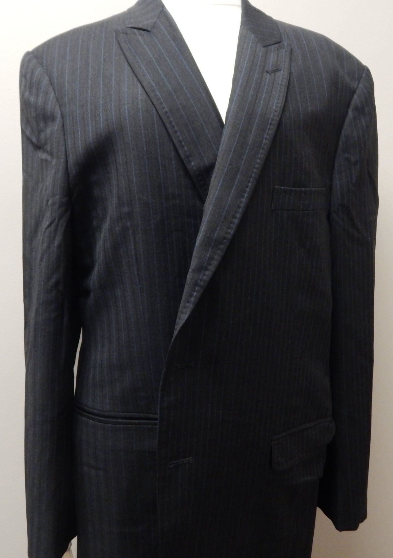 Custom made DeStefano gray and blue striped blazer worn by Nathan Fillion in both a promotional photoshoot and on screen in the series Castle. This jacket is also featured on the cover of Season One's DVD set. All items come with a certificate of authenticity good for the life of the piece.