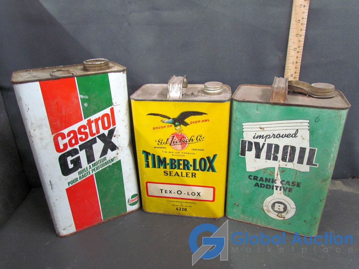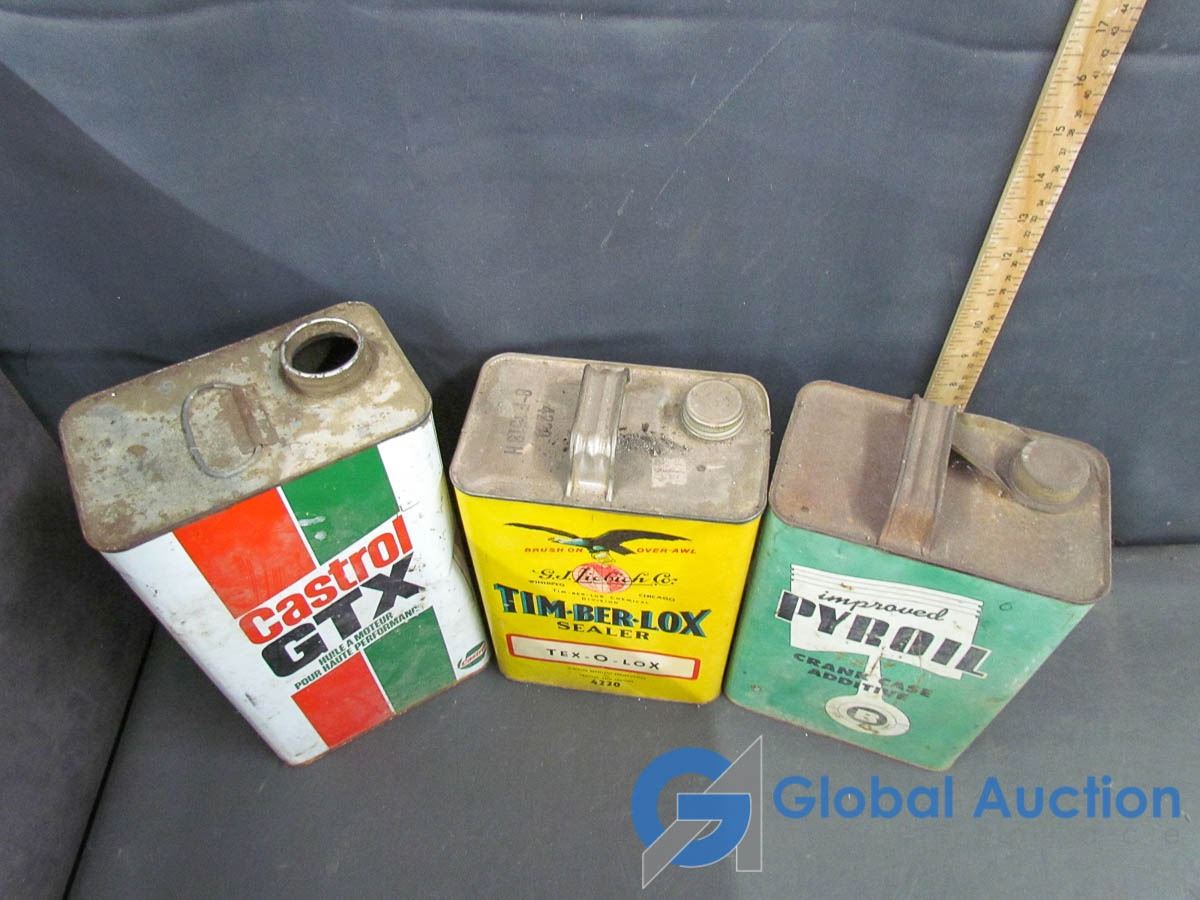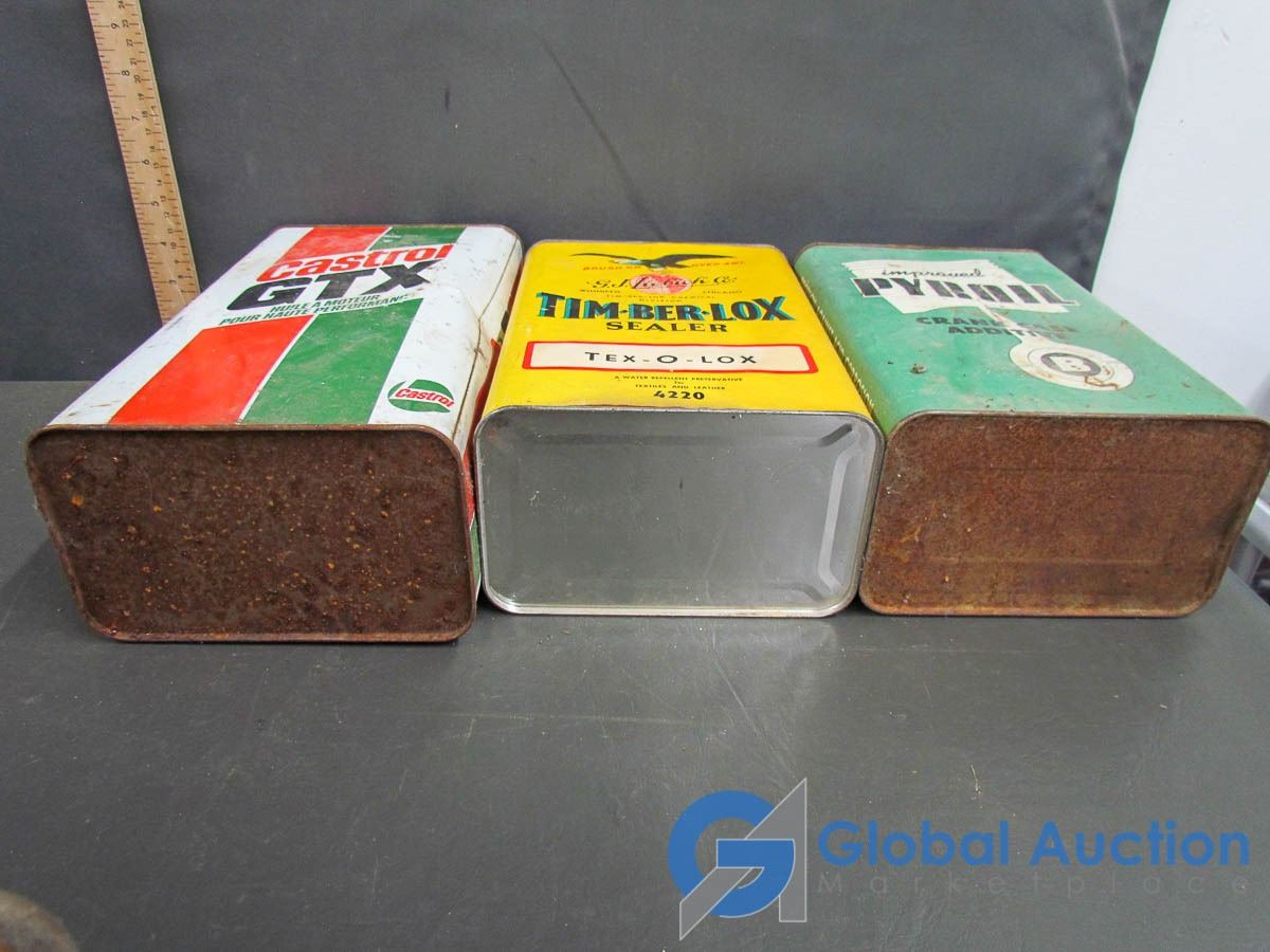 Castrol Oil Tin, Improved Pyroil Tin, Full TimberLox Sealer