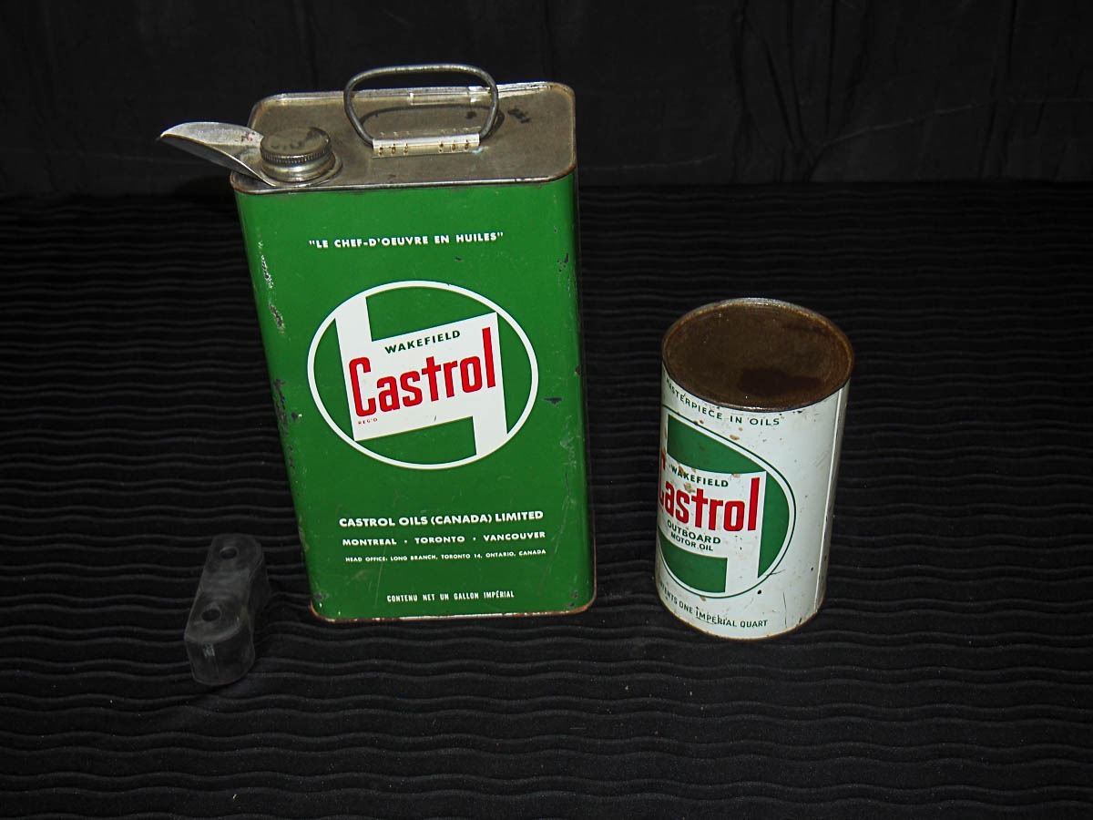 Castrol Outboard Motor Oil Tin (Full) & Castrol Chainlube Tin