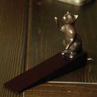 Cat Doorstop - 4.5"x7"x2" - Brass & Wood
