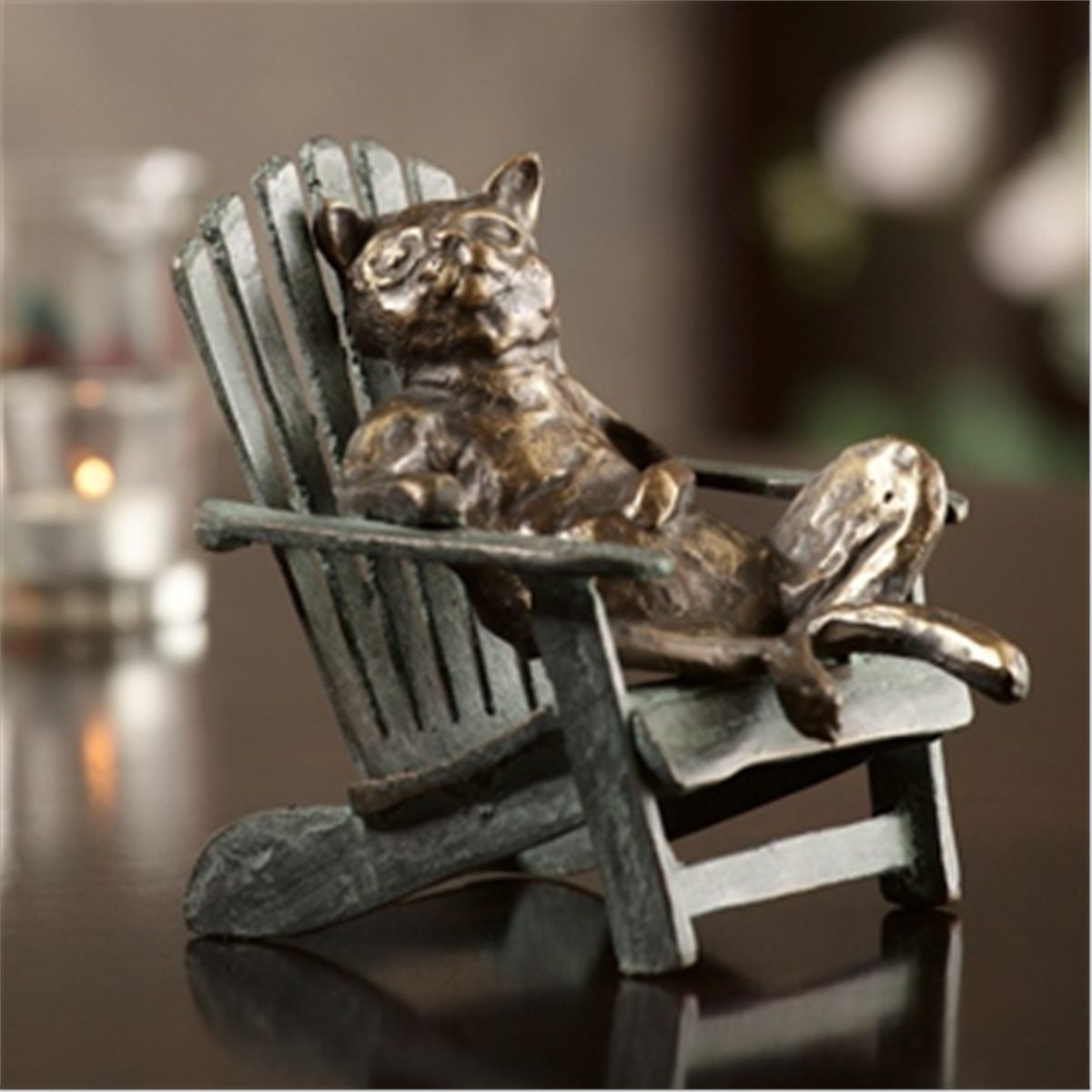 Cat On Beach Chair Sculpture - 6" X 5.5" X 5" - Cast Iron