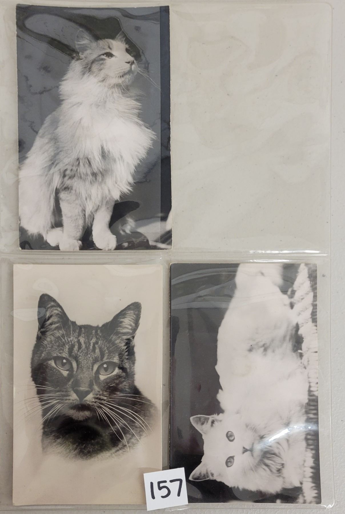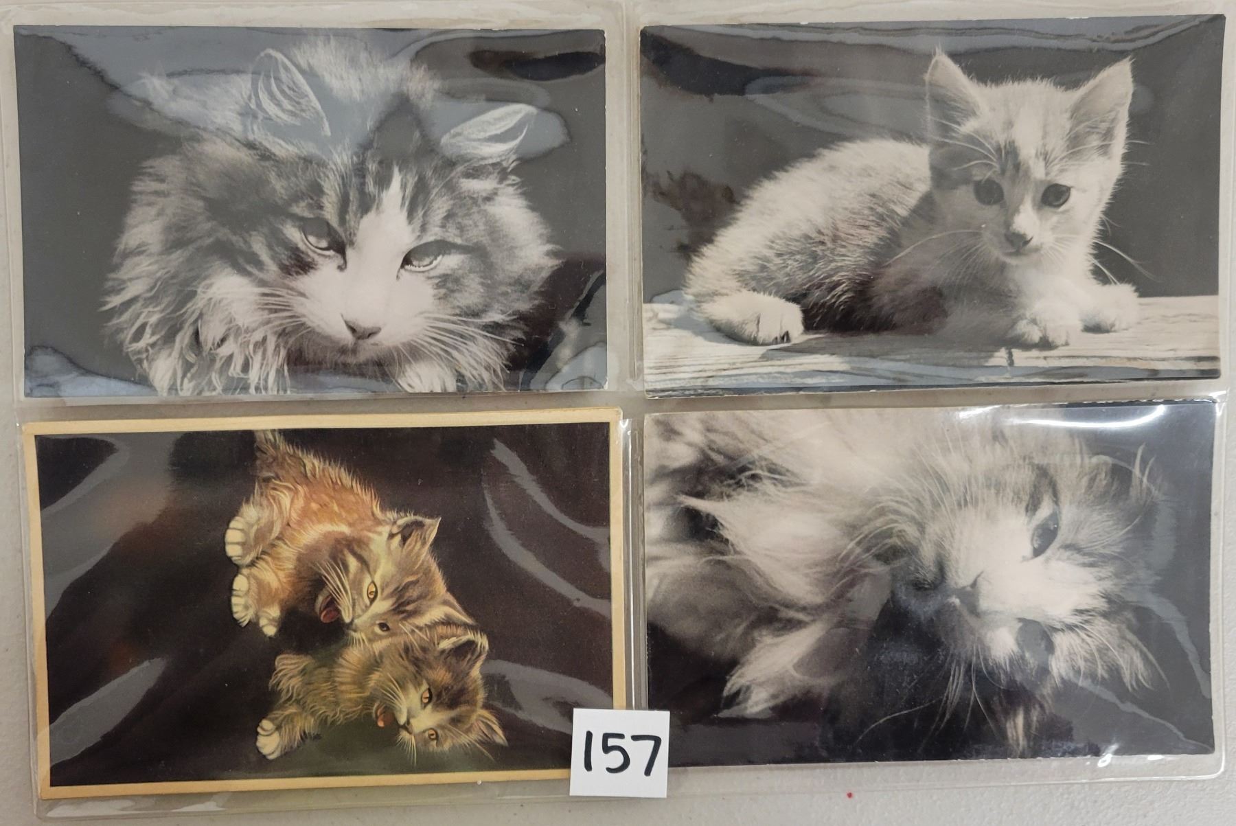 7 cat novelty squeaker postcards. Standard size. Some real photo.