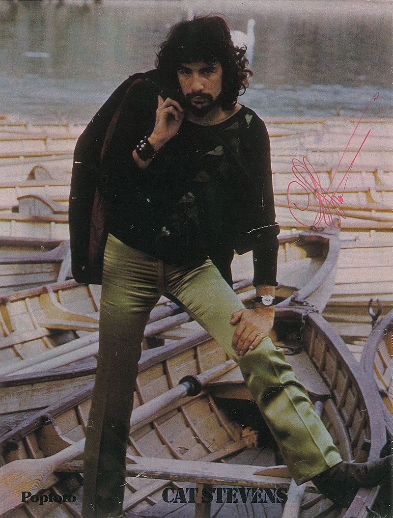 Color vintage 8.25 x 11 German magazine photo, signed in red felt tip, “Cat Stevens.” In fine condition.