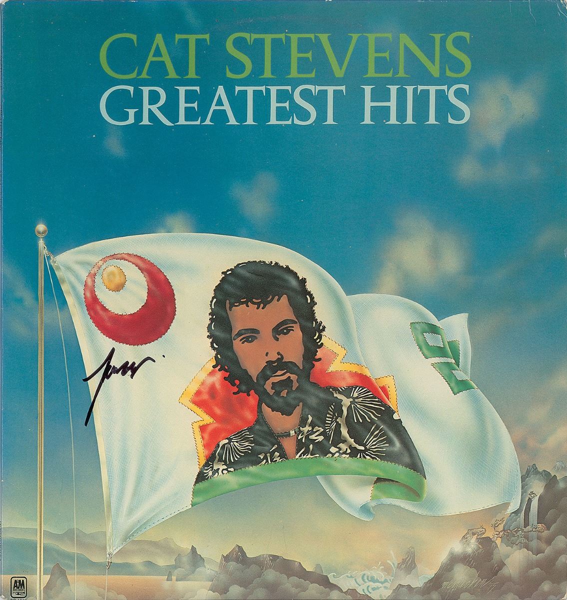 Greatest Hits album signed on the front cover in black felt tip, “Yusuf.” In fine condition. The record is included.