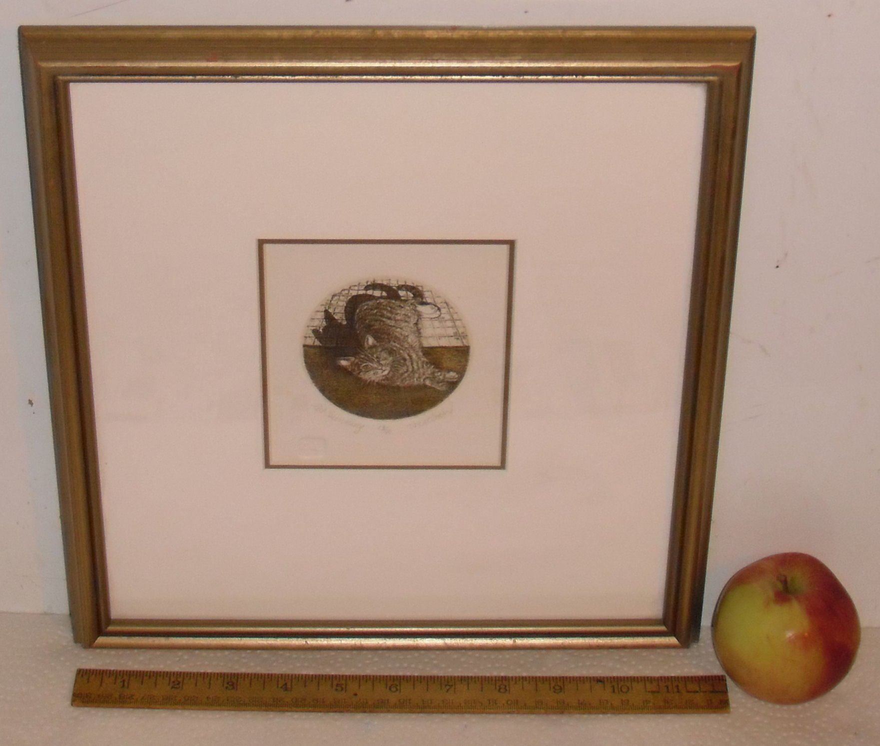 Cat etching by the "intaglio" method which is gravure on metal artistic style by Vicky Maclean born in USA living in Nova Scotia in Canada :