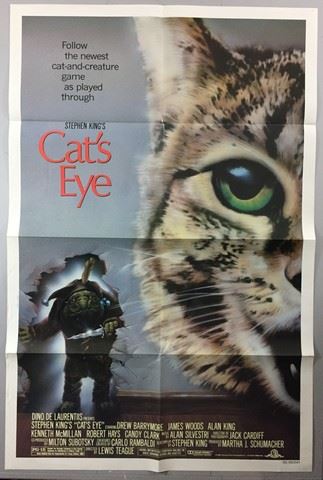 Cat's Eye (MGM, 1985). One Sheet. Starring: Drew Barrymore and James Woods. There are fold lines, creases, marks, paper loss, pin holes and edge wear damage. Fine. (27" X 41").
