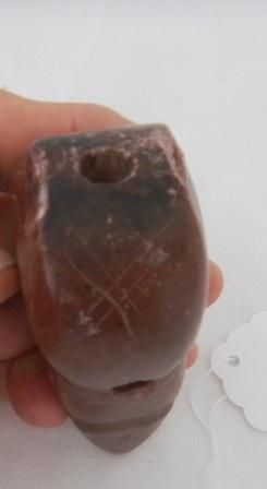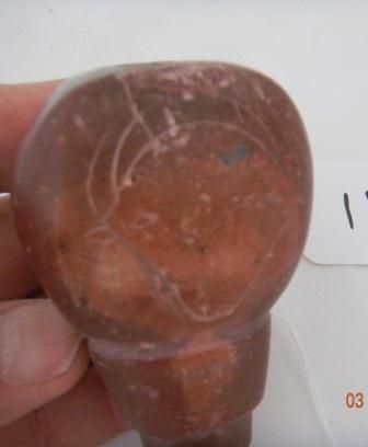 Catalite Stone Pipe, has Buffalo head engraved on two sides and bows and arrows on two sides, measures 2 by 4 inches. Early Twentieth Century, has nicks, chips scratches near bowl. . Shipping $14.00.