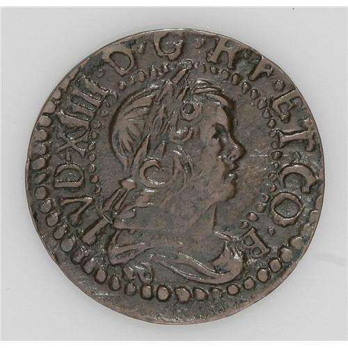<B>Catalonia. Louis XIIII Sixain 1648,</B></I> Laureate bust right/Arms, Cal Type 67b, # 115, Choice XF with a full strike and quite rare in this condition.<BR><BR><b>Shipping:</b> Coin/Currency (<a target="_blank" href="http://www.heritageauctions.com/common/shipping.php">view shipping information</a>)