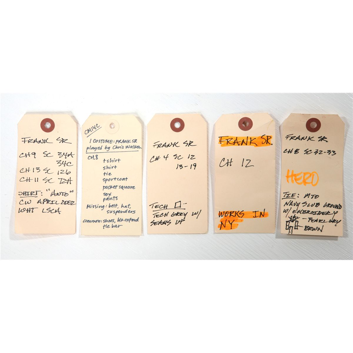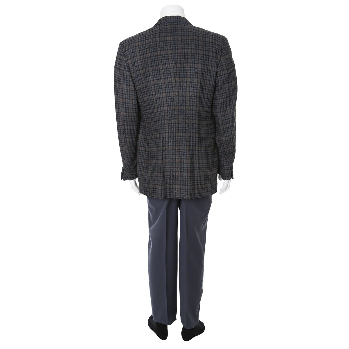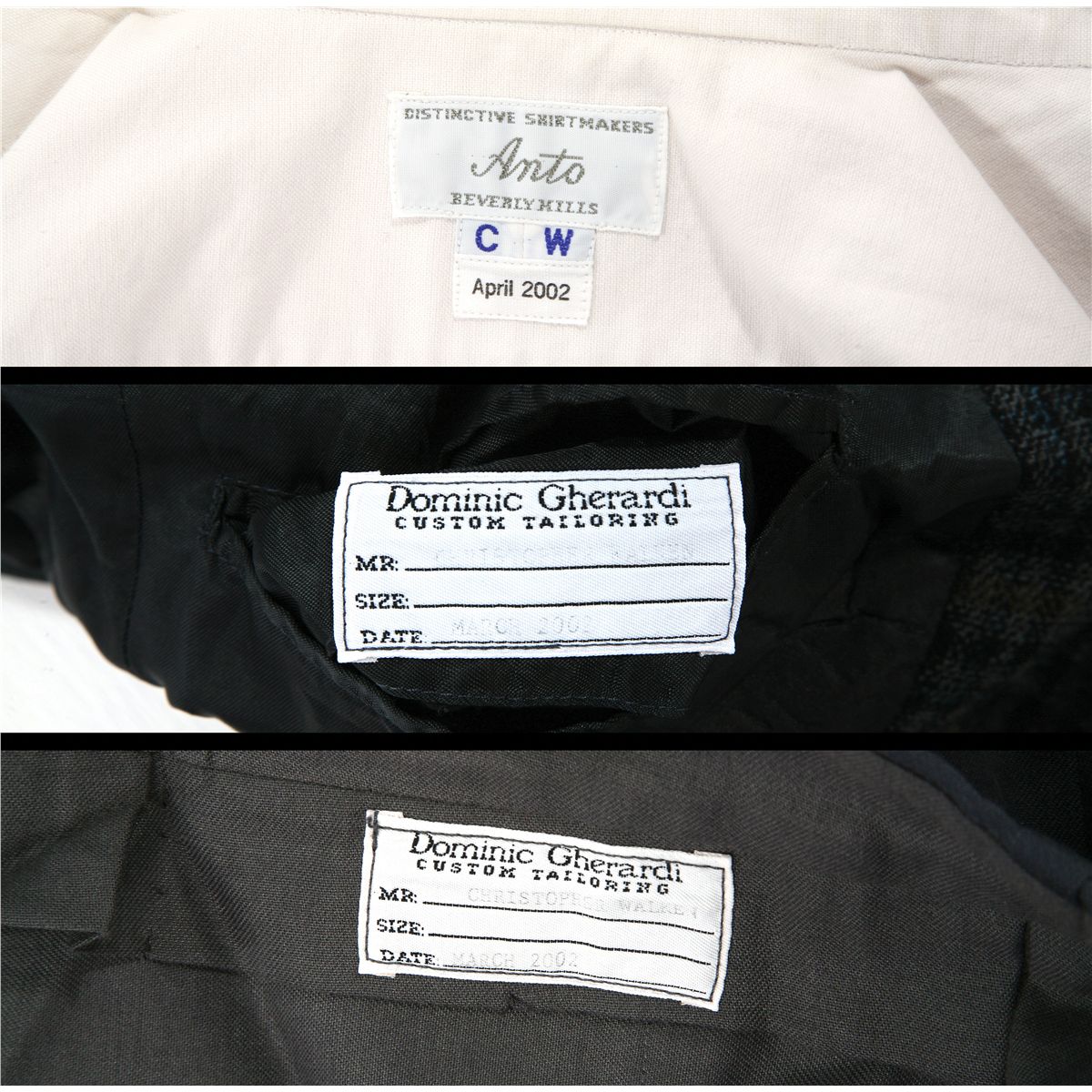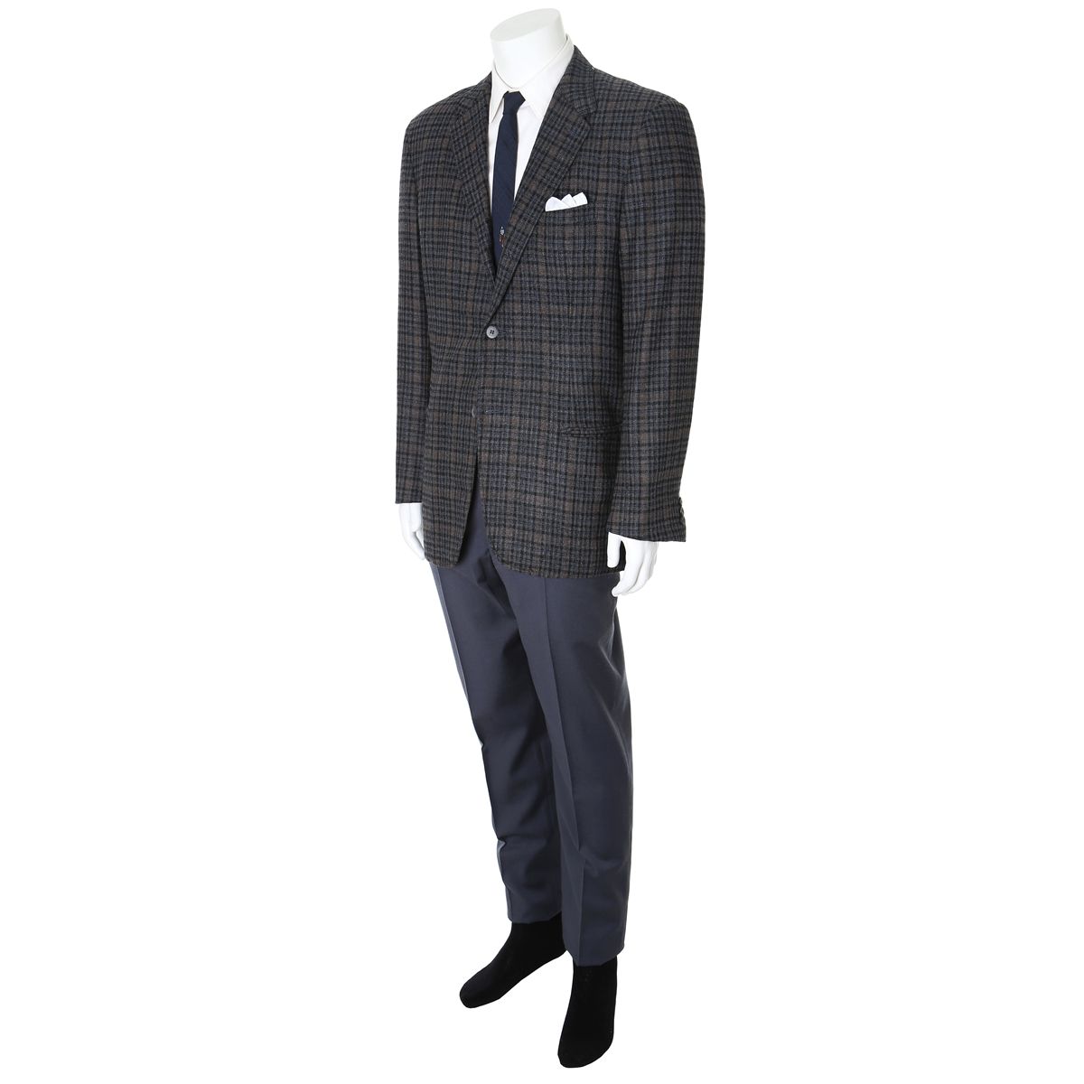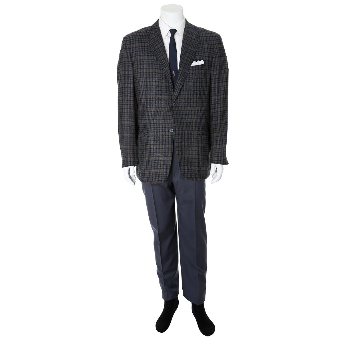 This costume was worn by the character Frank Abagnale Sr., portrayed by actor Christopher Walken, in the 2002 motion picture Catch Me If You Can, starring Leonardo DiCaprio. The suit comes complete with a sports jacket, pants, shirt, tie, black socks and pocket square. Costumers production tags are also included.