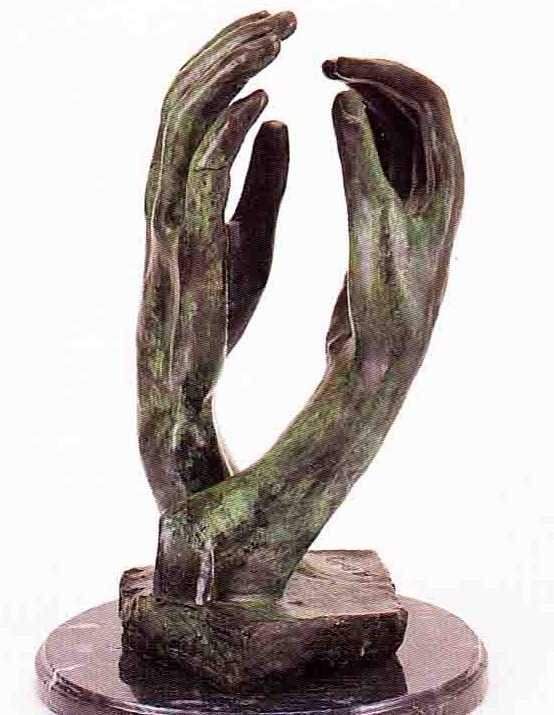 "Cathedral" Bronze Sculpture - After Rodin - Museum Quality Verdi Finish - Mounted On Fine Italian Marble Base - Signed - Mint Condition - 24"H X 13"W - Lost Wax Cast Bronze