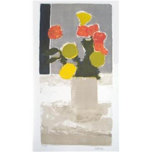 Notes:We are selling a signed and numbered color lithograph on Arches by French artist Bernard Cathelin. It is #182 from an edition of 185 and measures 29 3/4 x 17 inches. it was published and printed aby Achenbach Foundation for Graphic Arts. It is in mint condition, never framed and stored flat. The title of the piece is Fleurs Colores (Colored Flowers) and his very typical of the work of Cathelin and of his love of the subject.