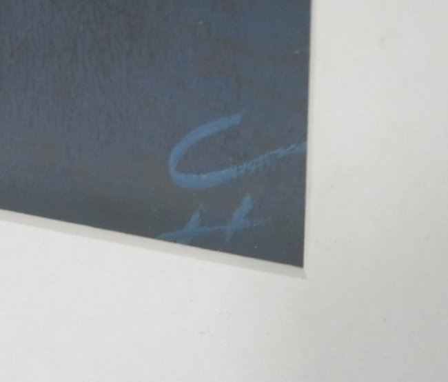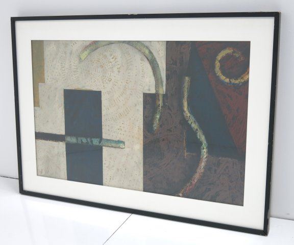 Mixed media on paper. Framed. Initialed lower right. Approx. 25" x 39" without frame, 33" x 47" with frame. Good condition.