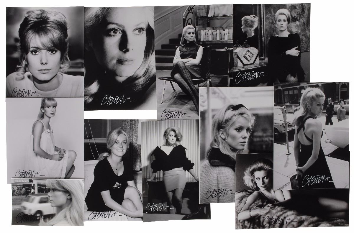 Set of eleven glossy photos of the lovely Deneuve, ranging in size from 7.5 x 5 to 8 x 12 photo, each signed in white ink or black felt tip. In overall fine condition.