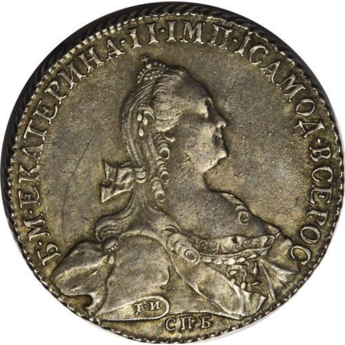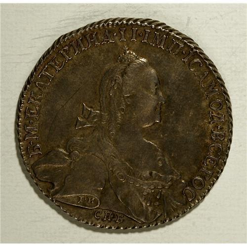 <B>Catherine II. Rouble 1776 C??-??,</B></I> Bit-221, sharply struck, and nicely toned AU with some remaining luster and a faint old scratch in the left obverse field, barely noticeable without magnification.<BR><BR><b>Shipping:</b> Coin/Currency (<a target="_blank" href="http://www.heritageauctions.com/common/shipping.php">view shipping information</a>)