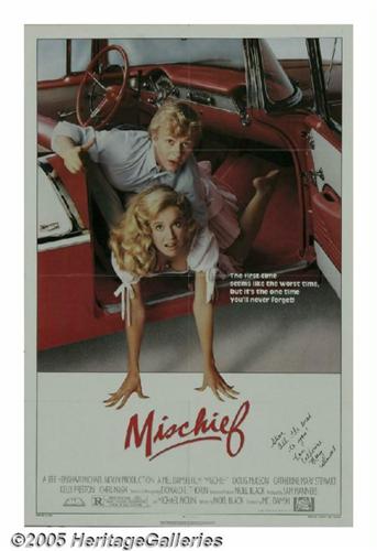 <B>Catherine Mary Stewart Signed Poster.</B></I> After playing the good girl-next-door in "The Last Starfighter" a year earlier, actress Catherine Mary Stewart followed up with a more vampy role, that of a wolfette in sheep's clothing in the romantic comedy "Mischief" (1985). Featured is a poster for the movie autographed by Stewart. <I>With COA from PSA/DNA.</B></I>