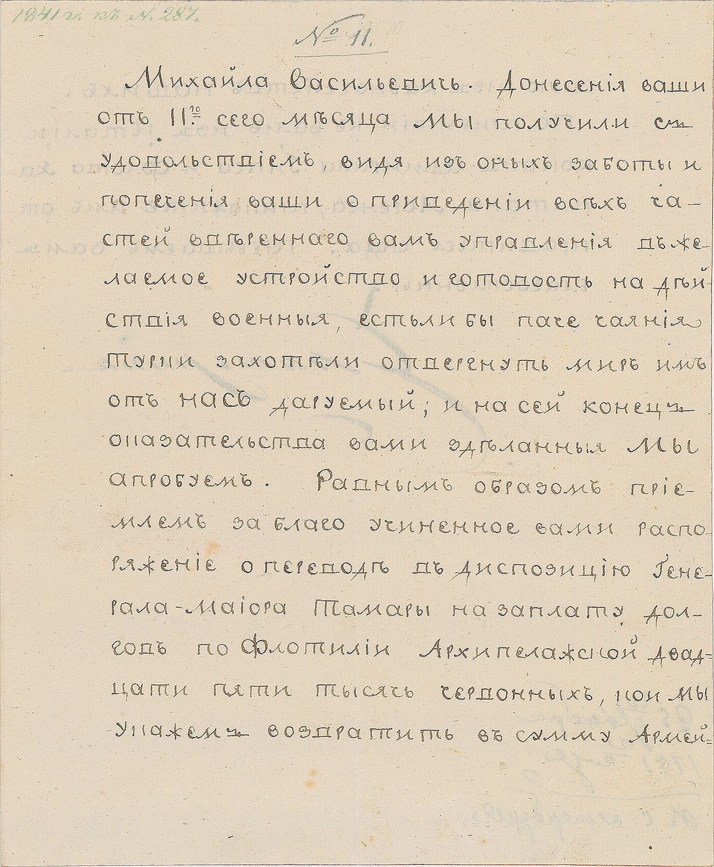 Choice LS in Russian, one page both sides, 7.25 x 9, December 25, 1791. Letter to Mikhailo Vasilievich, in part (translated): "We received your reports of the 11th of this month and we are happy to see your care and preparation of all the army units entrusted to you for a state of readiness, in case the Turks want to reject the signing of a peace agreement. If this happens we will approve of your actions. We also support the order issued by you on repaying the 25,000 chervonets owed to Major-General Tamer of the Archipelago flotilla. We will order that this amount of money will be paid back from our Treasury to the Army's account. When Rear Admiral Gips and Captain Laurence's fleet arrive order them to come here." In fine to very fine condition. Russia's second long war with the Turks, which began in 1787, was nearing a conclusion to Russia's advantage. The Treaty of Jassay would be signed early the following year, resulting in substantial land gains for Russia. Consignor notes that this originates directly from the collection of noted autograph dealer Robert Batchelder.