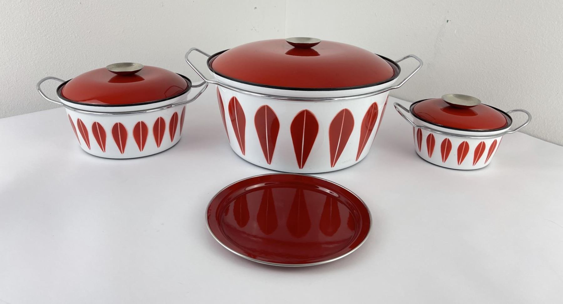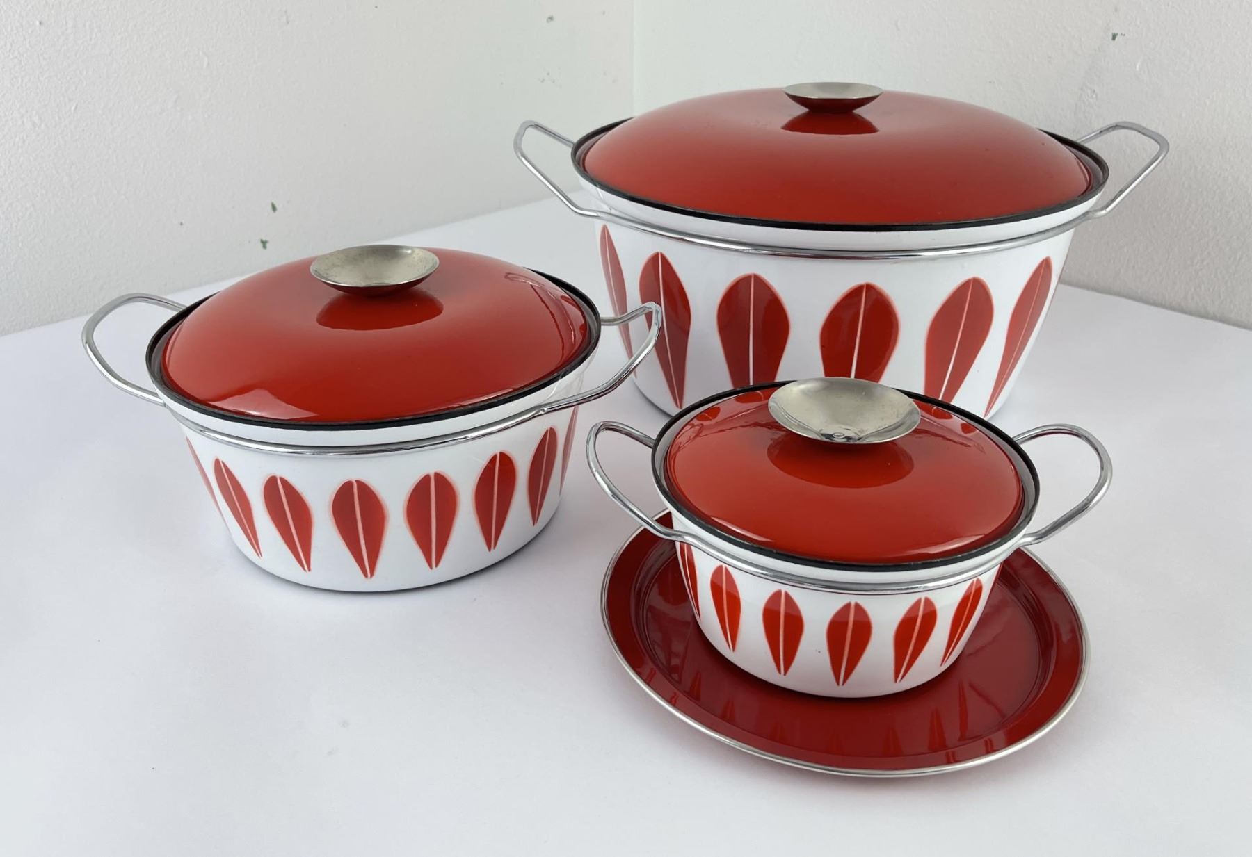Very nice set. 6", 4", 3" tall sizes. Nice graduated set with a single underplate.
