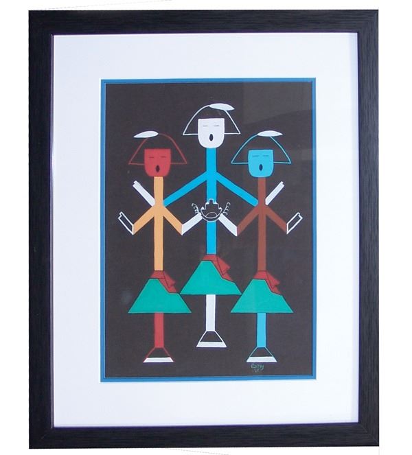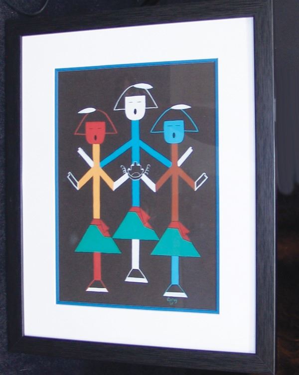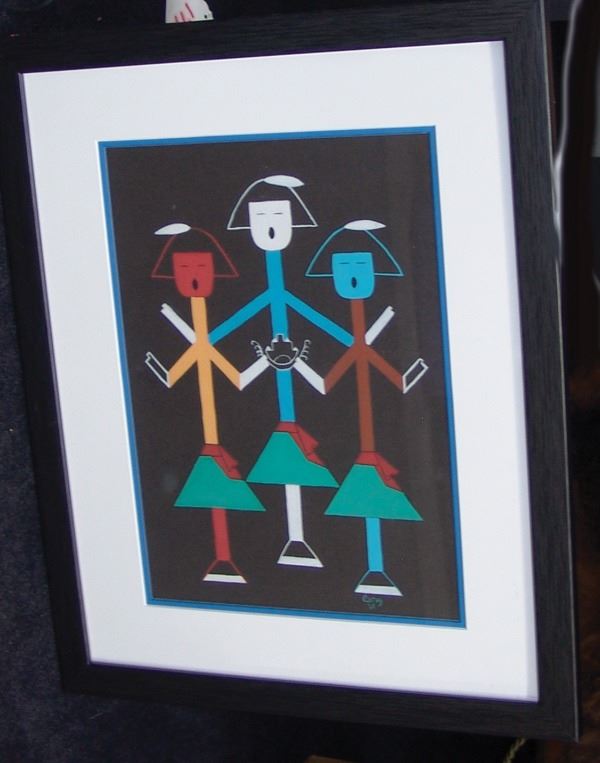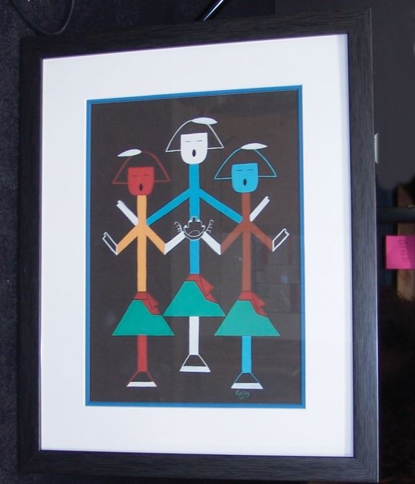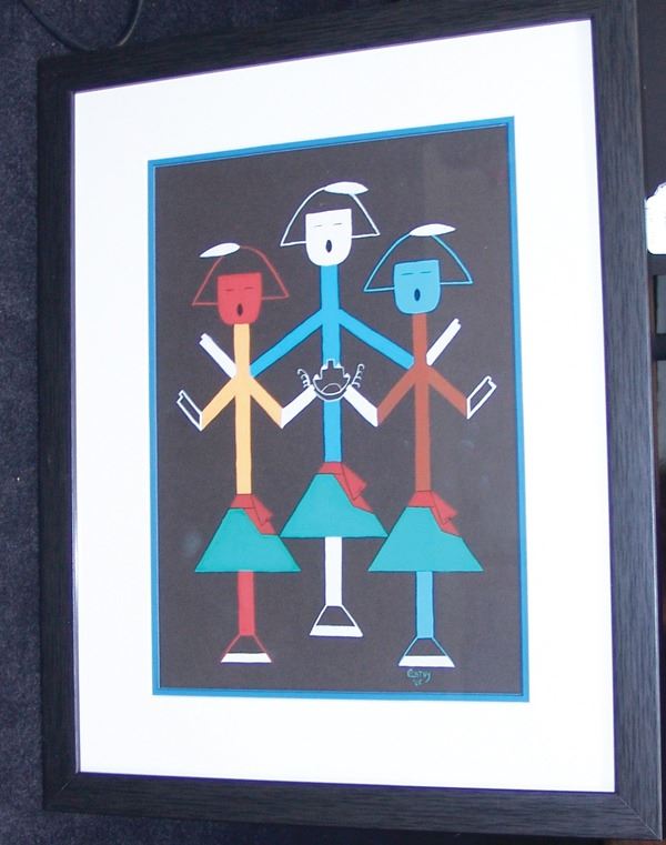 Signed original gouache on paper a depiction of three singing, Yei type figures. Very good condition, matted and framed.Ca. 196515" x 10" (21" x 17")