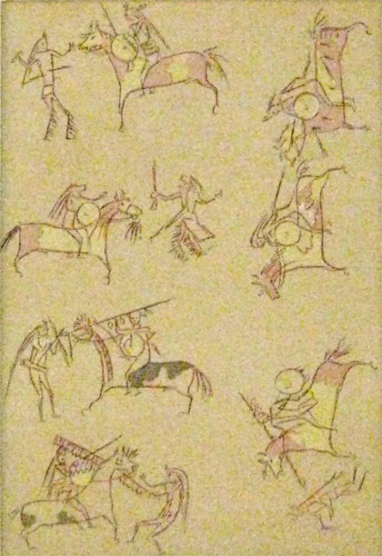 Capturing a Wild Horse, 4 ¾” x 5 ¾”; Chasing Wild Horses, 5” x 5 ¾”; Indian Warriors, 5” x 7”.