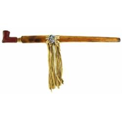 Catlinite Indian Pipe With Beadwork on Stem. 17.5" Long. Estimate $300 - $500.