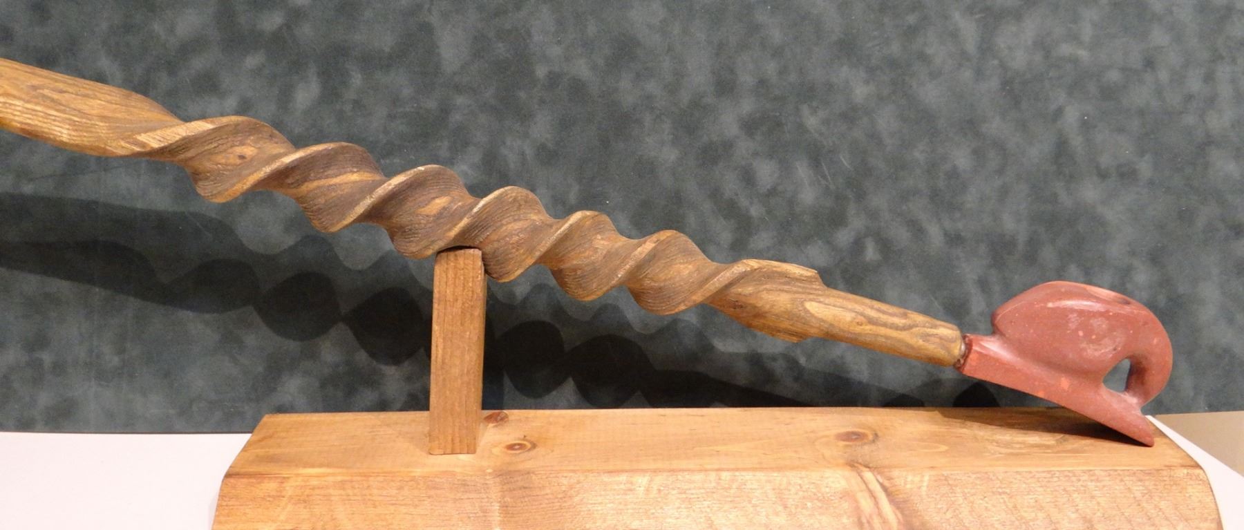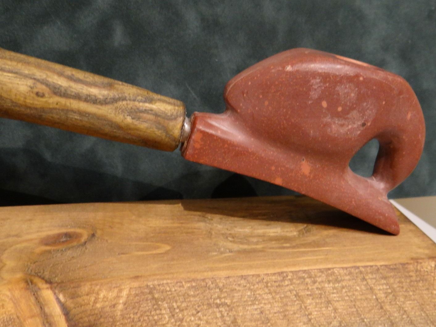 Catlinite peace pipe, in oak case