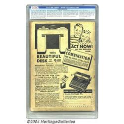 <B>Catman Comics #1 (Holyoke Publications, 1941) CGC GD/VG 3.0 Slightly brittle pages.</B></I> This first issue features "America's Most Thrilling Fast-Action Adventure Stories" of Cat-Man and other heroes, plus two characters whose names would later be used to larger acclaim at other publishers, the Black Widow and the Rag-Man. Charles Quinlan cover and art. Overstreet 2004 GD 2.0 value = $370; VG 4.0 value = $740. <BR><BR><B>Important notice:</B> Heritage usually auctions material at the rate of 200-250 lots per hour. On some occasions eBay Live bid software or the Internet may not be able to keep up with the pace of the auction. We recommend placing a realistic absentee bid now as insurance to avoid disappointment. Occasionally the auctioneer may eliminate or reject an eBay Live bid, and the auctioneer may also reopen a lot after the close of the eBay live bidding (usually because we missed an audience bid), and may reject your bid even if it shows you as the winning bidder. By bidding via eBay Live, you agree that Heritage may award the lot to another bidder at its sole discretion under the circumstances described above or any other reasonable circumstances. Since eBay bids are not shown to us until we open the lot on the floor, we treat those bids just like floor bids. In most cases the floor responds before the eBay bid is presented to us, due to Internet lag time, so for consistency we have made it a policy that floor bids are always considered first over tie eBay live bids. Also please note that all Heritage lots purchased through eBay Live carry a 20% Buyer's Premium. Please make sure you read the Terms and Conditions before you bid. </span></font></tr></table></td></tr></table>