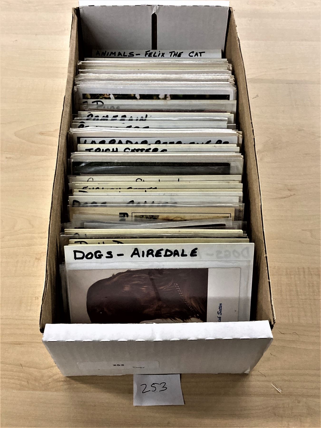 Approx. 350 cards of cats & dogs. More dogs then cats. Sorted mostly by breeds. Airedales, Boxer, Huskies, Bulldogs, Spaniels, Felix the Cats, & more. Early to chrome. Some continentals.