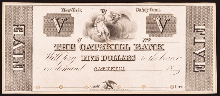 Catskill, New York. The Catskill Bank. Five Dollars. Very Choice India Paper Proof.