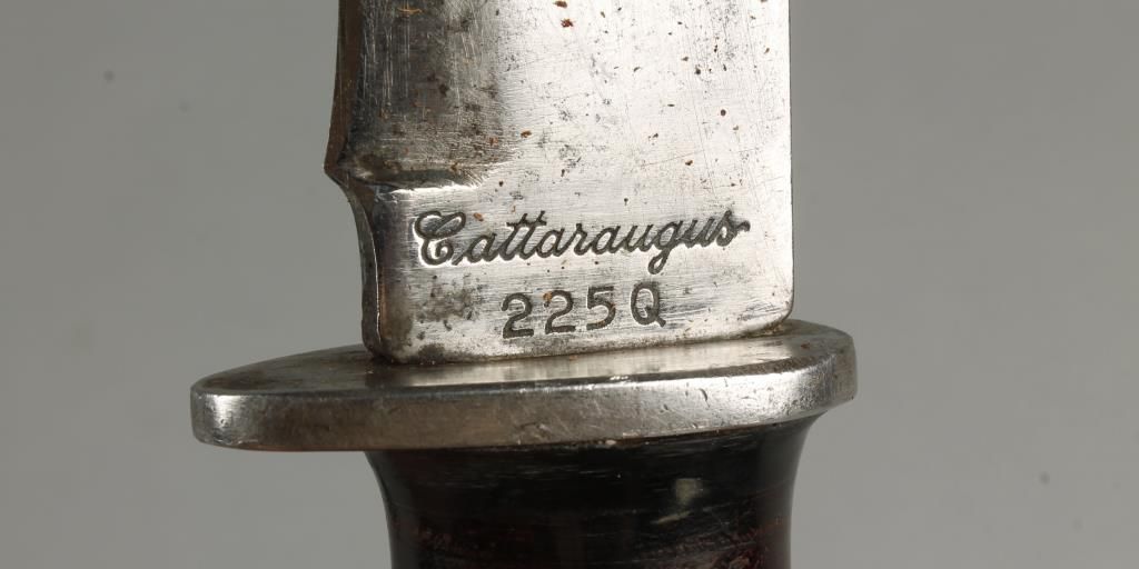 With stacked leather handle clearly marked "225Q" measures 10" overall with a 6" blade. Also includes black leather sheath.