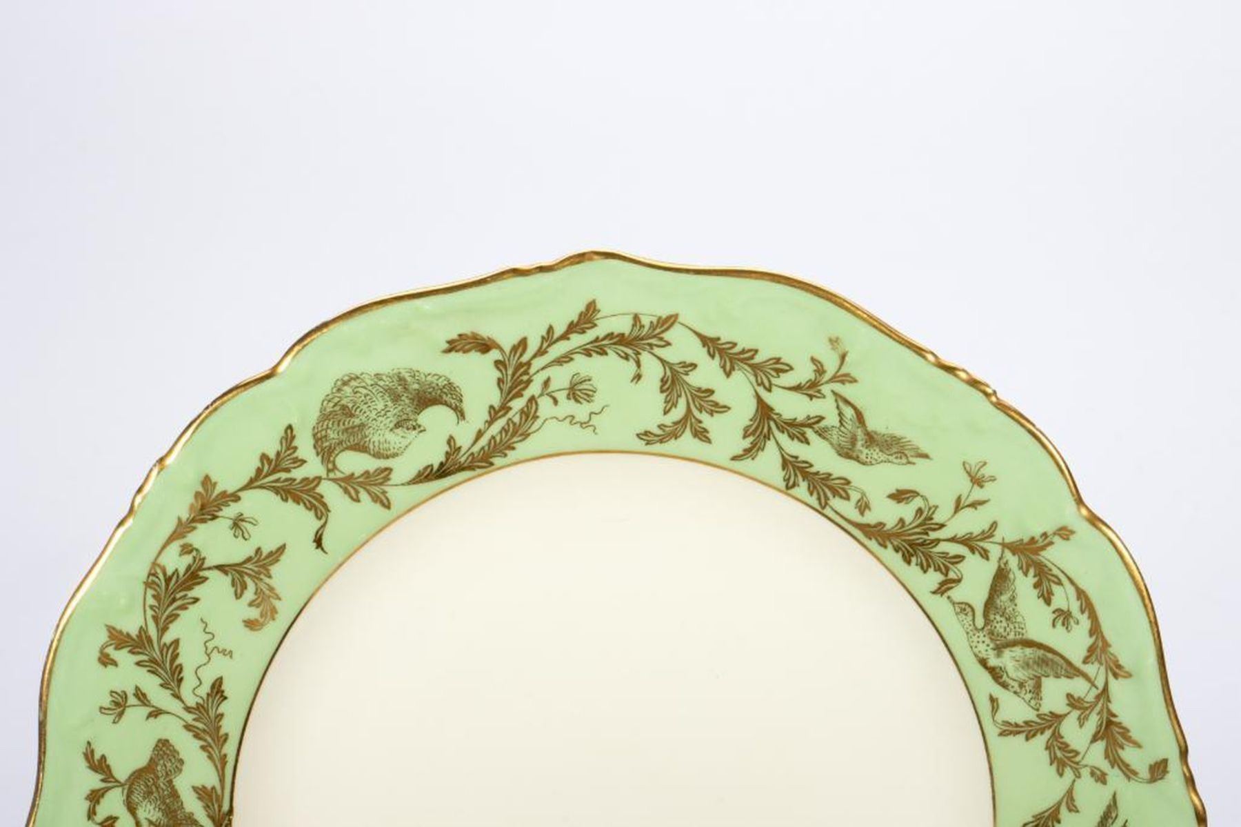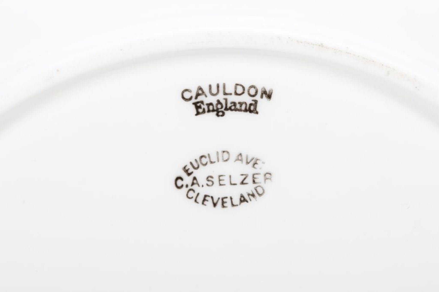 Set of fourteen nine inch plates. Trhe rim with gilt floral decorration. Marked Caulldon and C.A. Selzer, Cleveland. Condition: Very slight wear to gilding at edge.