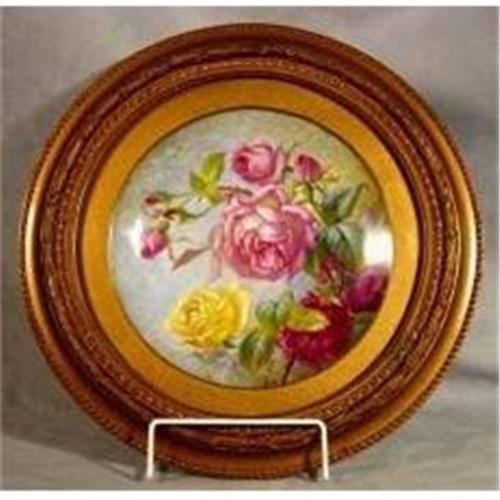 <p>Hand Painted and signed by S. Pope. Decorated with rambling roses and briars. On original frame