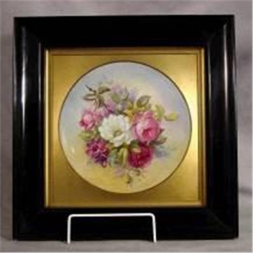 <p>Hand Painted and signed by S. Pope. Decorated with rambling roses and briars. On original frame